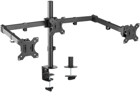 Diese Monitor-Tischhalterung für bis zu drei Monitore sorgt für eine schonende Sitz- bzw. Stehposition. Vielfältige Verstellmöglichkeiten sorgen für einen optimalen Arbeitsplatz. Mit Nivellierschrauben für eine optimale Höhenjustierung der Bildschirme.